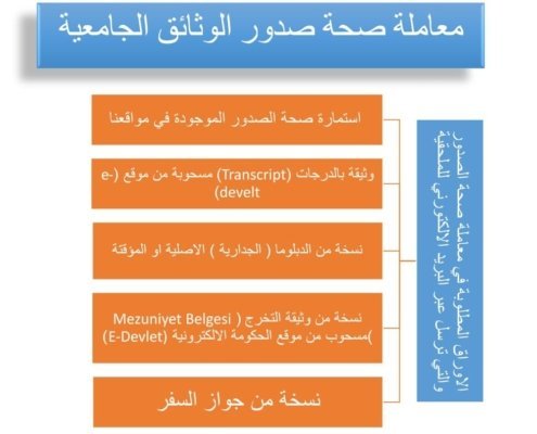 حرصا منا لإنجاز معاملات صحة الصدور لطلبتنا الأعزاء وبأسرع وقت ممكن، اتبعت الملحقية الالية الجديدة وبالتنسيق مع مؤسسة التعليم العالي التركية (YÖK) للتحقق من صحة صدور وثائق التخرج.